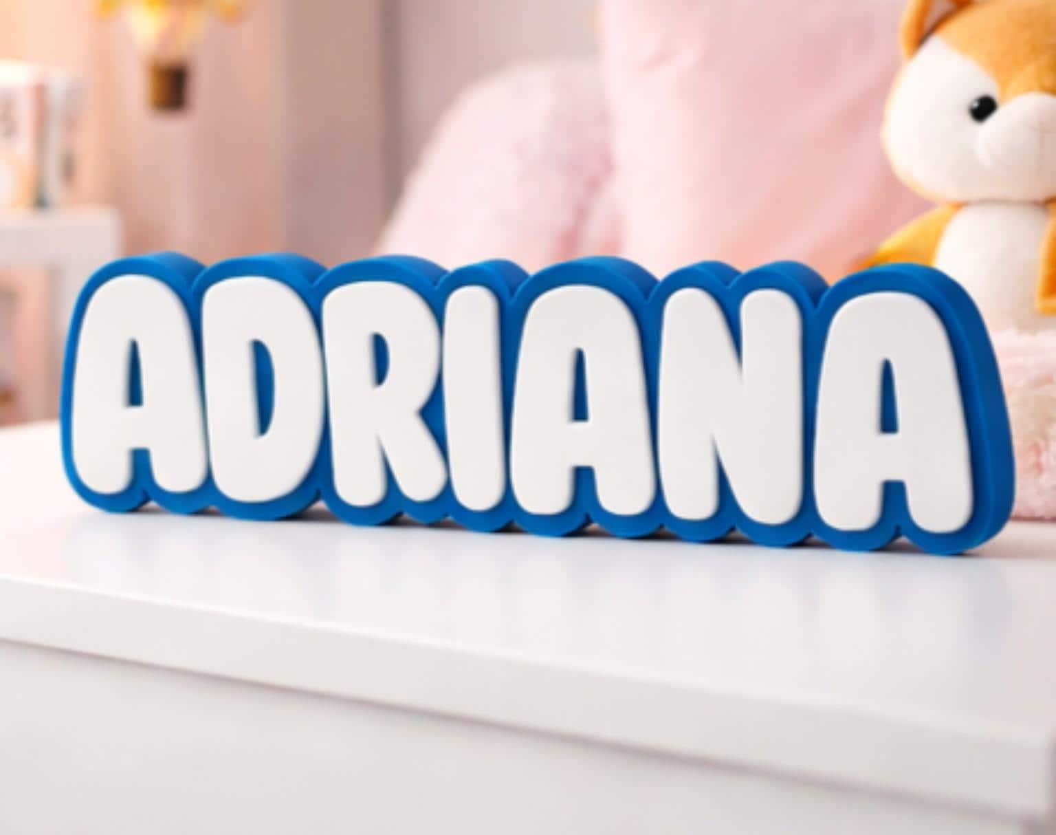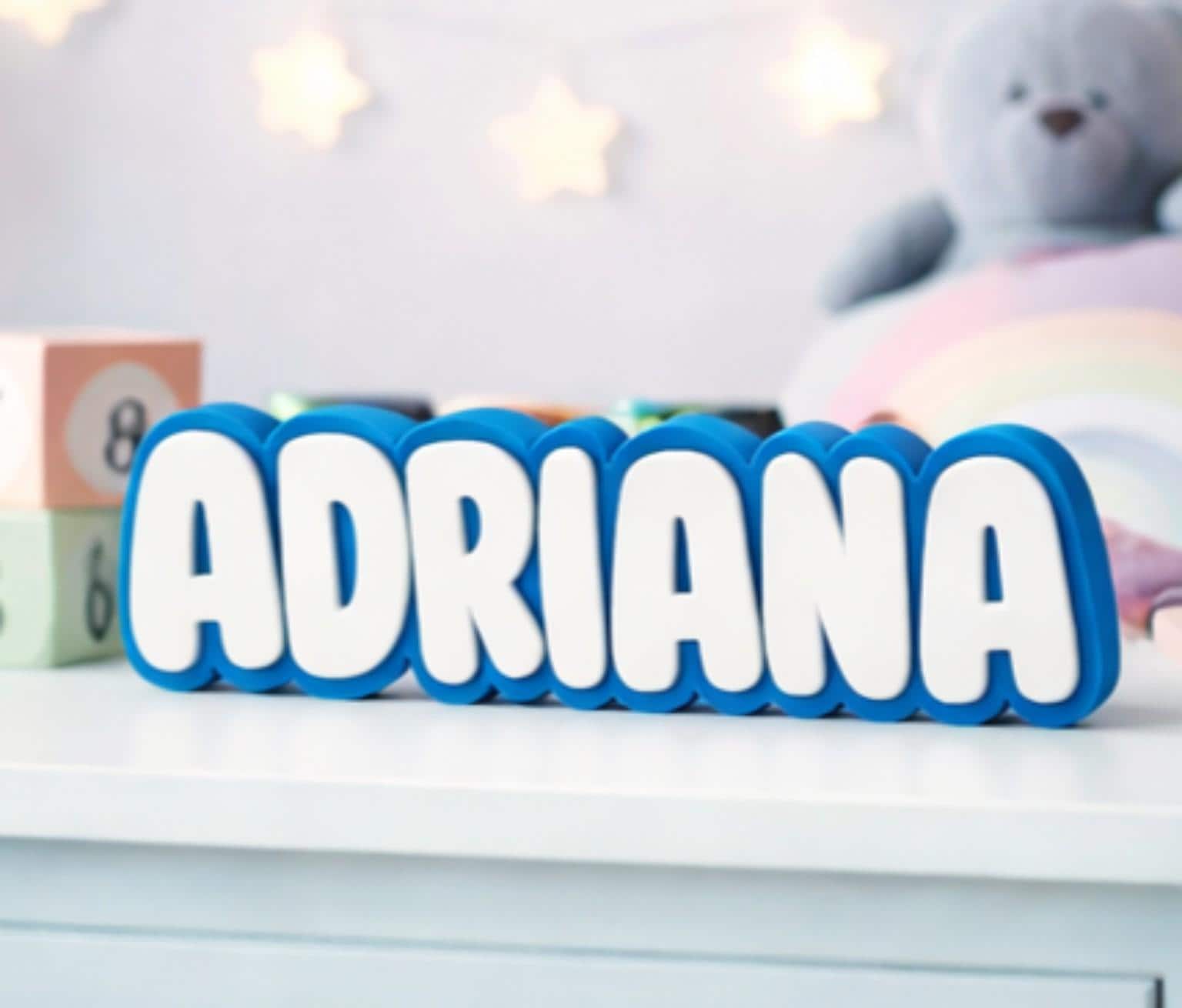 Each name is custom designed and 3D printed with layered colors for a clean, raised look.