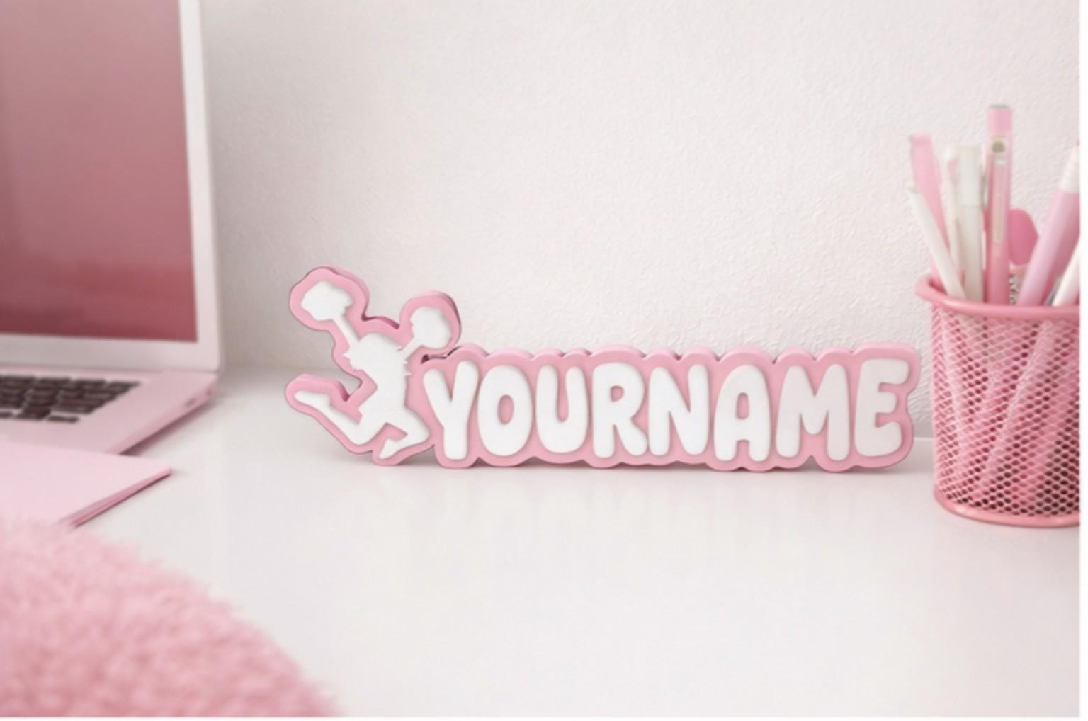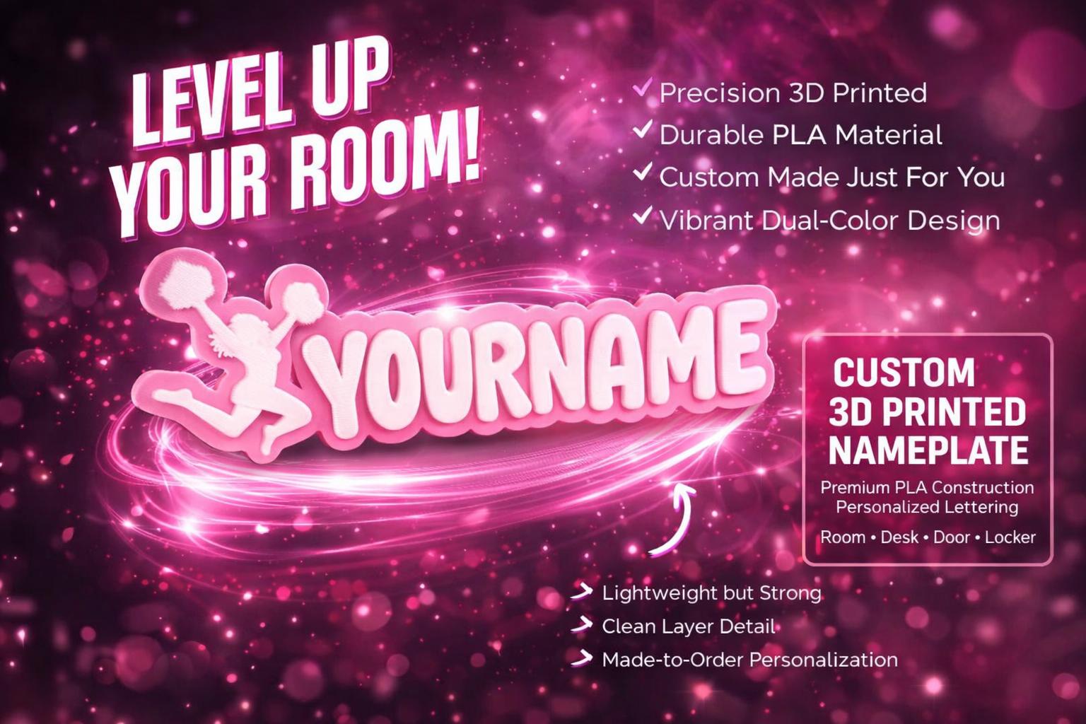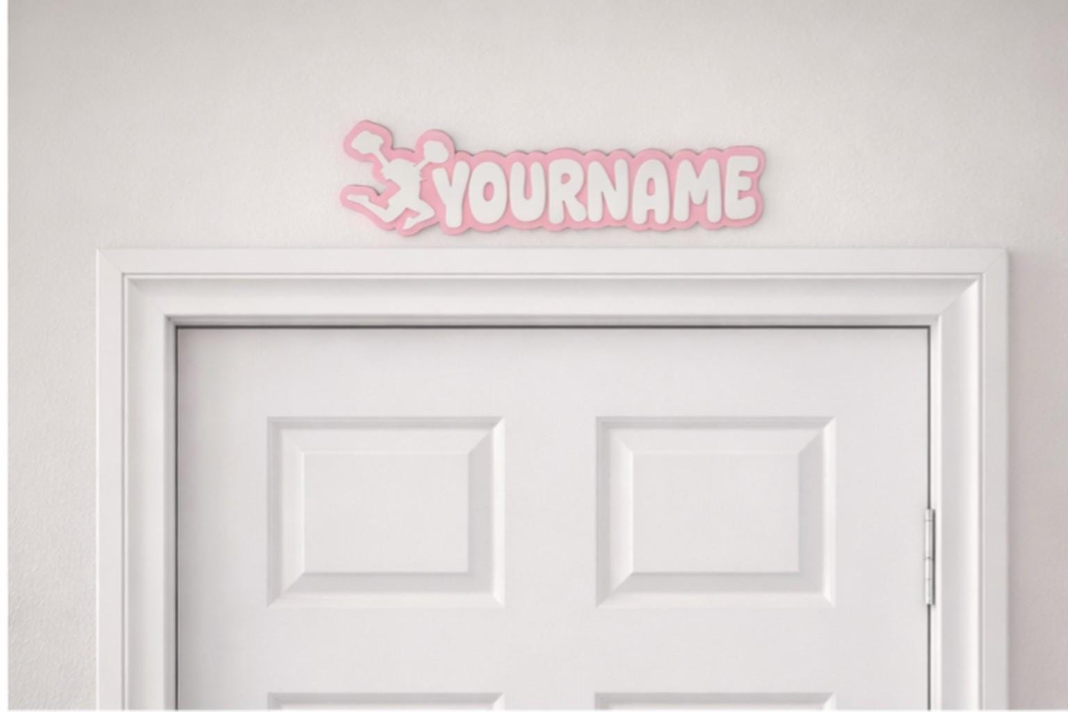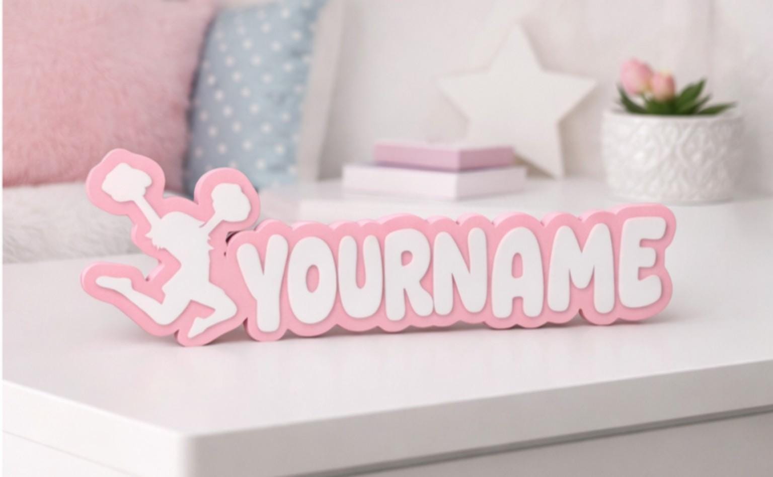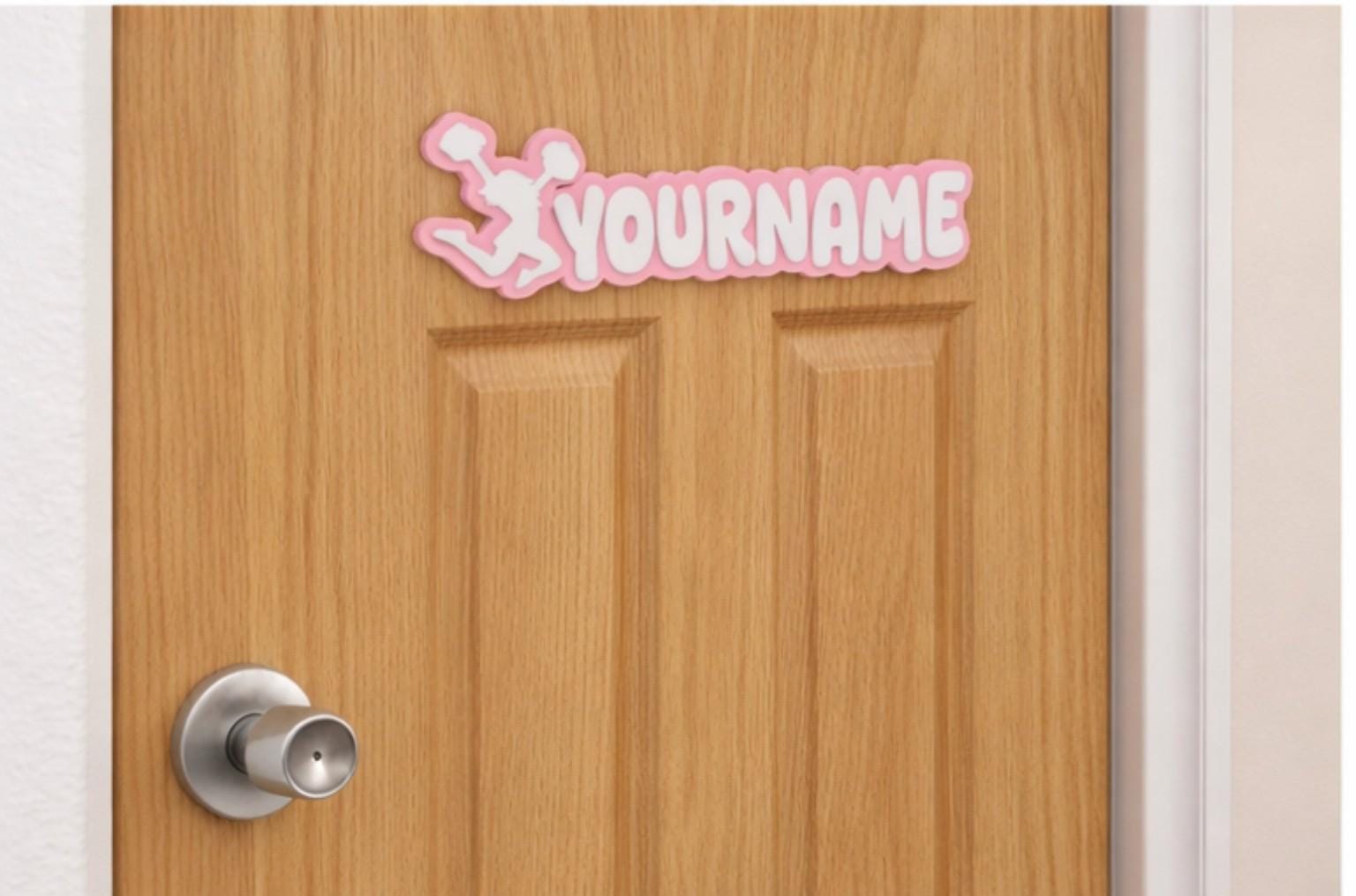 Bring your cheer space to life with a custom nameplate made just for your athlete! This personalized cheerleader name sign is perfect for bedroom doors, above-the-door décor, desks, lockers, or cheer practice corners.