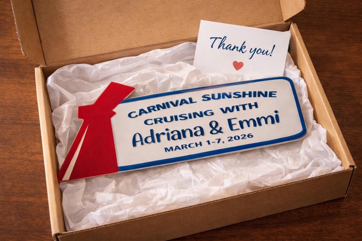 Surprise someone with a custom cruise sign before your trip. It also makes a fun keepsake after the vacation ends!